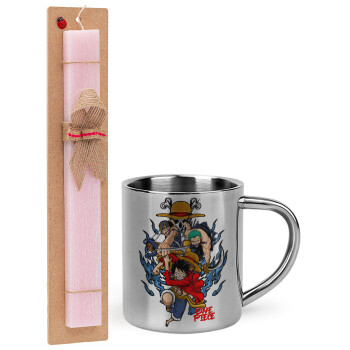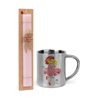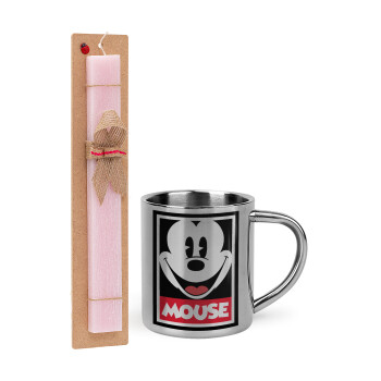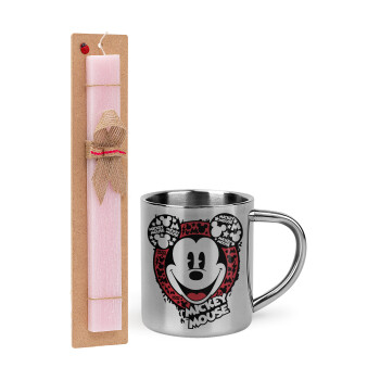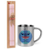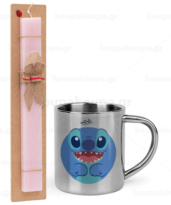 Lilo & Stitch blue, Πασχαλινή Λαμπάδα με μεταλλική κούπα θερμό (300ml) & κερί αρωματικό πλακέ (30cm) (ΡΟΖ)