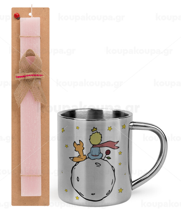 Little prince, Πασχαλινή Λαμπάδα με μεταλλική κούπα θερμό (300ml) & κερί αρωματικό πλακέ (30cm) (ΡΟΖ)