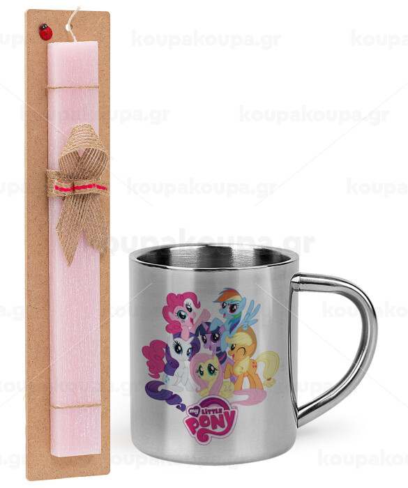 My Little Pony, Πασχαλινή Λαμπάδα με μεταλλική κούπα θερμό (300ml) & κερί αρωματικό πλακέ (30cm) (ΡΟΖ)