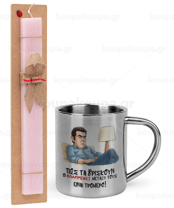 ΠΩΣ ΤΑ ΒΡΙΣΚΟΥΝ ΟΙ ΒΛΑ....ΝΟΙ ΜΕΤΑΞΥ ΤΟΥΣ, ΕΙΝΑΙ ΤΡΟΜΕΡΟ!!!, Πασχαλινή Λαμπάδα με μεταλλική κούπα θερμό (300ml) & κερί αρωματικό πλακέ (30cm) (ΡΟΖ)