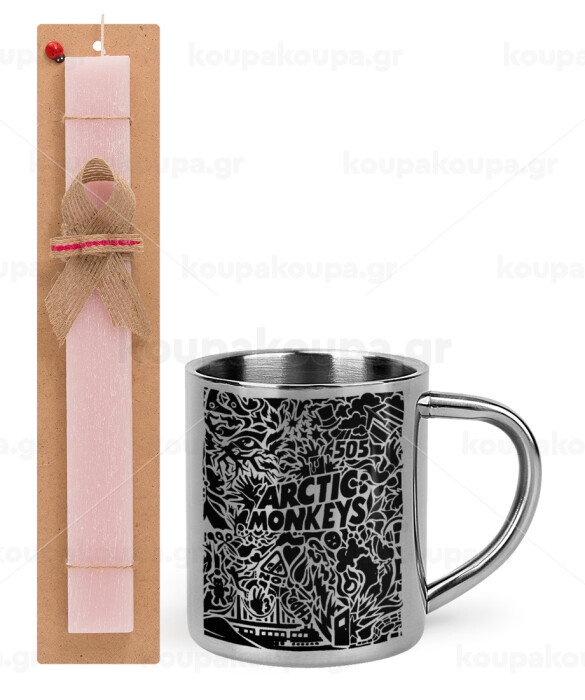 Arctic Monkeys, Πασχαλινή Λαμπάδα με μεταλλική κούπα θερμό (300ml) & κερί αρωματικό πλακέ (30cm) (ΡΟΖ)