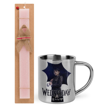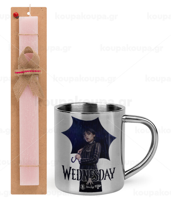 Wednesday rain, Πασχαλινή Λαμπάδα με μεταλλική κούπα θερμό (300ml) & κερί αρωματικό πλακέ (30cm) (ΡΟΖ)
