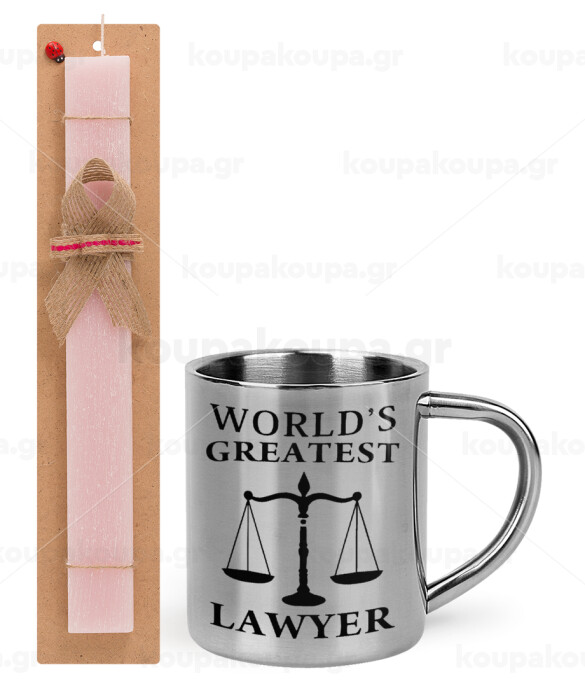 World's greatest Lawyer, Πασχαλινή Λαμπάδα με μεταλλική κούπα θερμό (300ml) & κερί αρωματικό πλακέ (30cm) (ΡΟΖ)