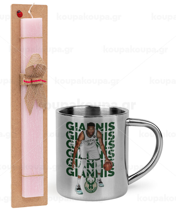 Γιάννης Αντετοκούνμπο, Πασχαλινή Λαμπάδα με μεταλλική κούπα θερμό (300ml) & κερί αρωματικό πλακέ (30cm) (ΡΟΖ)