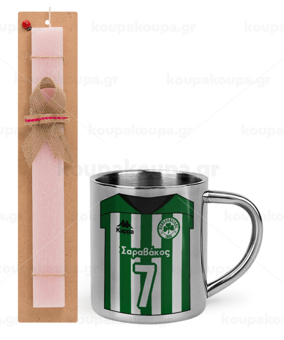 Παναθηναϊκός εμφάνιση, Πασχαλινή Λαμπάδα με μεταλλική κούπα θερμό (300ml) & κερί αρωματικό πλακέ (30cm) (ΡΟΖ)