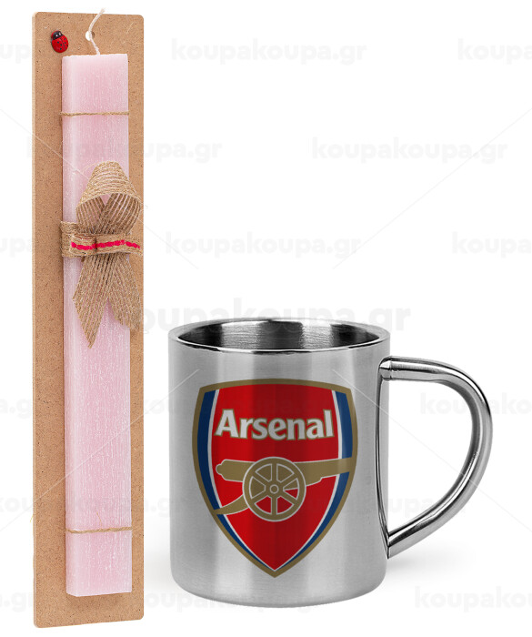 Arsenal, Πασχαλινή Λαμπάδα με μεταλλική κούπα θερμό (300ml) & κερί αρωματικό πλακέ (30cm) (ΡΟΖ)