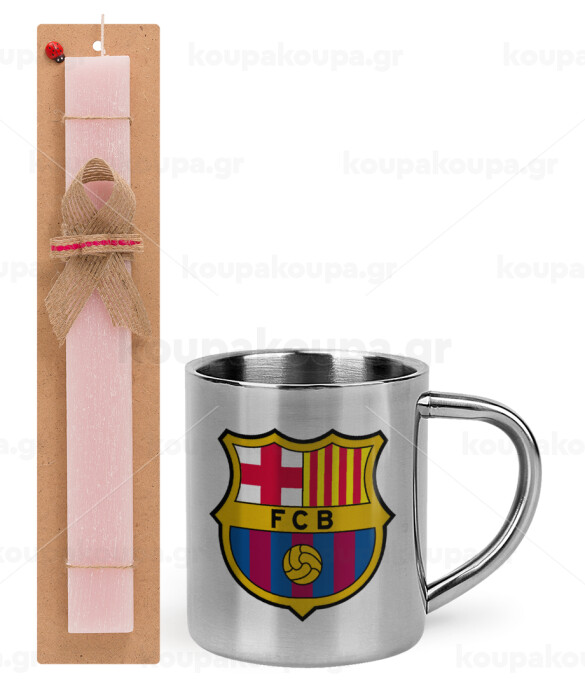 Barcelona FC, Πασχαλινή Λαμπάδα με μεταλλική κούπα θερμό (300ml) & κερί αρωματικό πλακέ (30cm) (ΡΟΖ)
