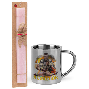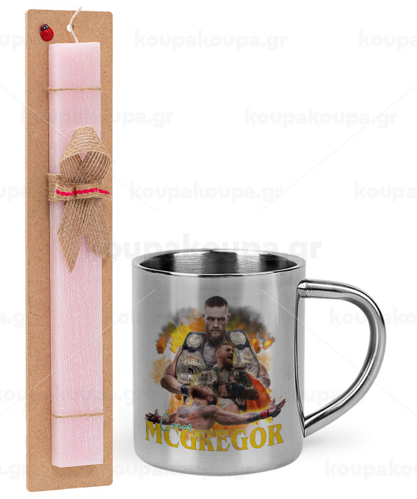 Conor McGregor Notorious, Πασχαλινή Λαμπάδα με μεταλλική κούπα θερμό (300ml) & κερί αρωματικό πλακέ (30cm) (ΡΟΖ)