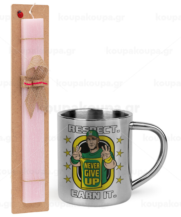 John Cena, Πασχαλινή Λαμπάδα με μεταλλική κούπα θερμό (300ml) & κερί αρωματικό πλακέ (30cm) (ΡΟΖ)