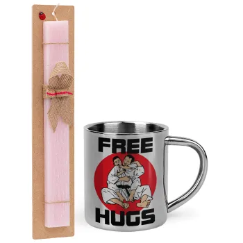 JUDO free hugs, Πασχαλινή Λαμπάδα με μεταλλική κούπα θερμό (300ml) & κερί αρωματικό πλακέ (30cm) (ΡΟΖ)