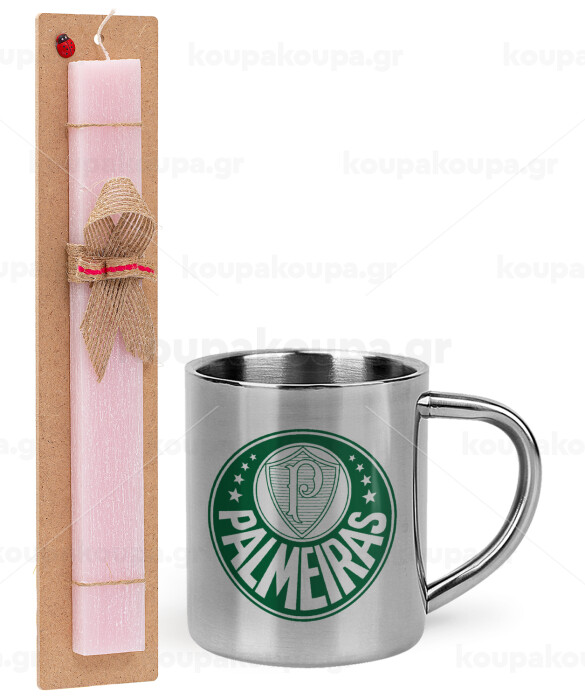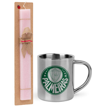 Palmeiras, Πασχαλινή Λαμπάδα με μεταλλική κούπα θερμό (300ml) & κερί αρωματικό πλακέ (30cm) (ΡΟΖ)