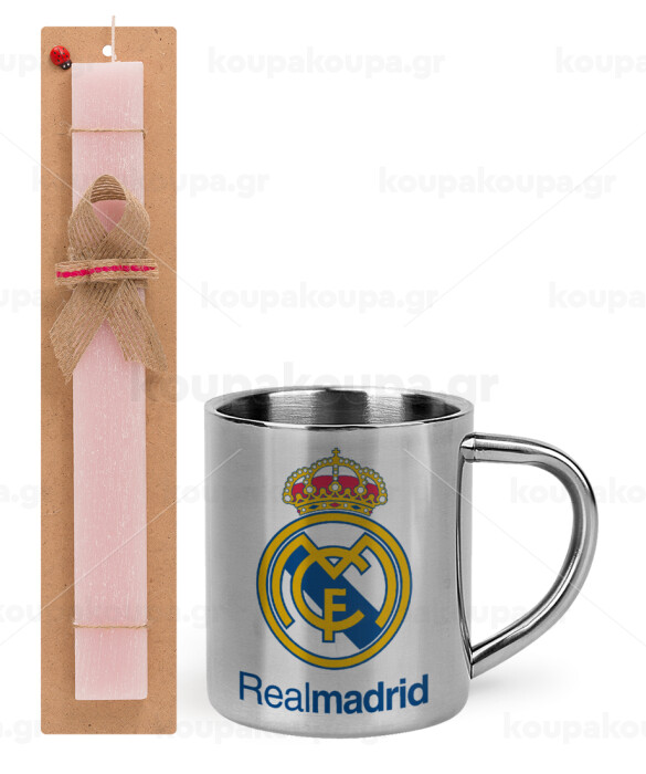 Real Madrid CF, Πασχαλινή Λαμπάδα με μεταλλική κούπα θερμό (300ml) & κερί αρωματικό πλακέ (30cm) (ΡΟΖ)