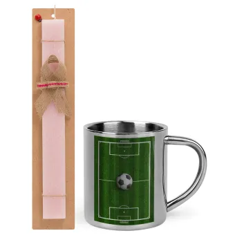 Soccer field, Γήπεδο ποδοσφαίρου, Πασχαλινή Λαμπάδα με μεταλλική κούπα θερμό (300ml) & κερί αρωματικό πλακέ (30cm) (ΡΟΖ)