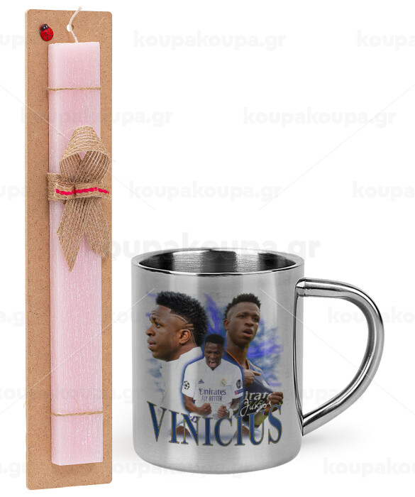 Vinicius Junior, Πασχαλινή Λαμπάδα με μεταλλική κούπα θερμό (300ml) & κερί αρωματικό πλακέ (30cm) (ΡΟΖ)