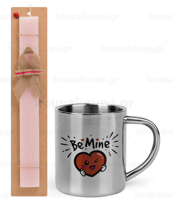 Be mine!, Πασχαλινή Λαμπάδα με μεταλλική κούπα θερμό (300ml) & κερί αρωματικό πλακέ (30cm) (ΡΟΖ)