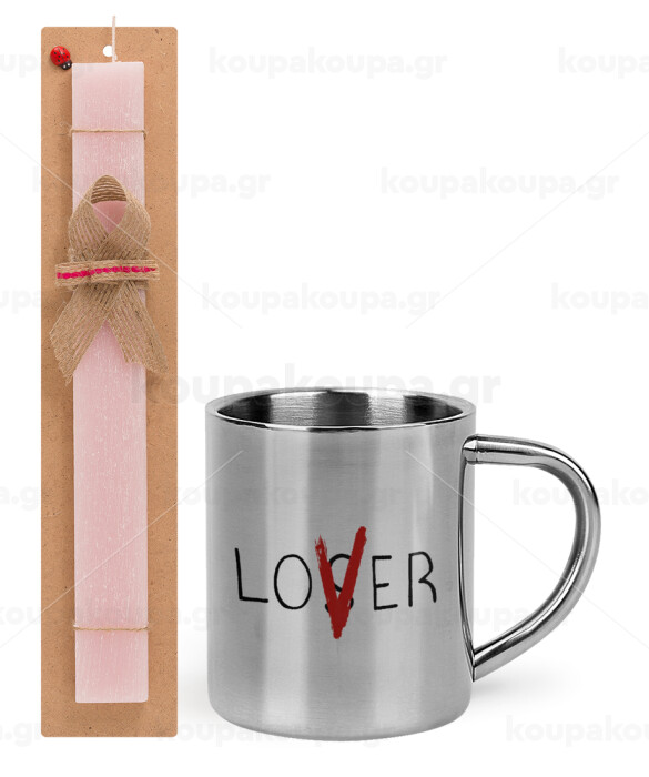 IT Lov(s)er, Πασχαλινή Λαμπάδα με μεταλλική κούπα θερμό (300ml) & κερί αρωματικό πλακέ (30cm) (ΡΟΖ)