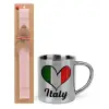 Italy flag, Πασχαλινή Λαμπάδα με μεταλλική κούπα θερμό (300ml) & κερί αρωματικό πλακέ (30cm) (ΡΟΖ)