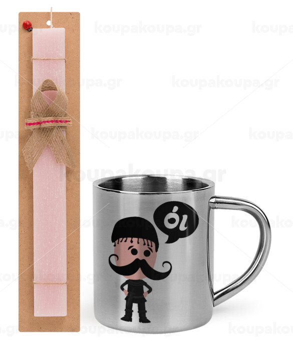 Κρητικός "Οι", Πασχαλινή Λαμπάδα με μεταλλική κούπα θερμό (300ml) & κερί αρωματικό πλακέ (30cm) (ΡΟΖ)