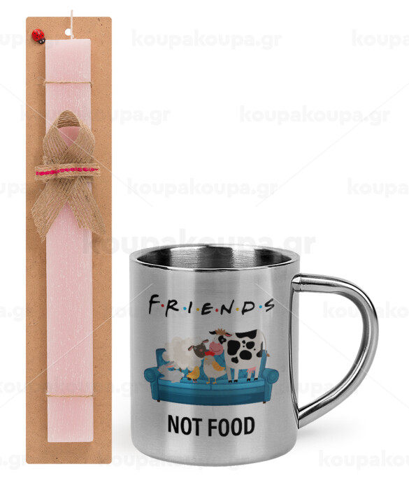friends, not food, Πασχαλινή Λαμπάδα με μεταλλική κούπα θερμό (300ml) & κερί αρωματικό πλακέ (30cm) (ΡΟΖ)