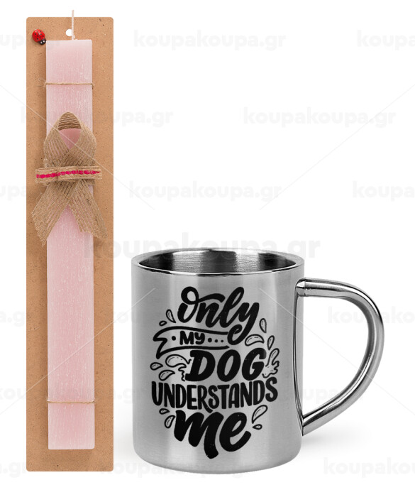 Only my DOG, understands me, Πασχαλινή Λαμπάδα με μεταλλική κούπα θερμό (300ml) & κερί αρωματικό πλακέ (30cm) (ΡΟΖ)