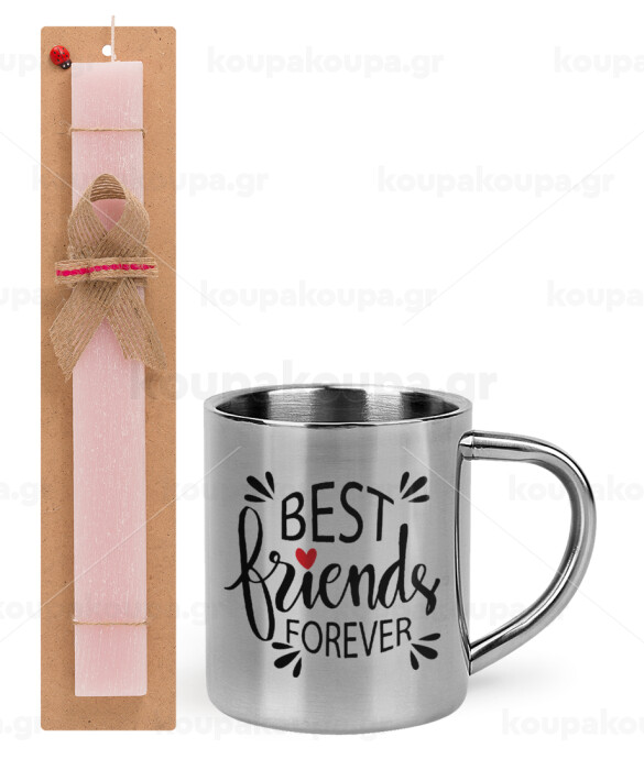 Best Friends forever, Πασχαλινή Λαμπάδα με μεταλλική κούπα θερμό (300ml) & κερί αρωματικό πλακέ (30cm) (ΡΟΖ)