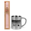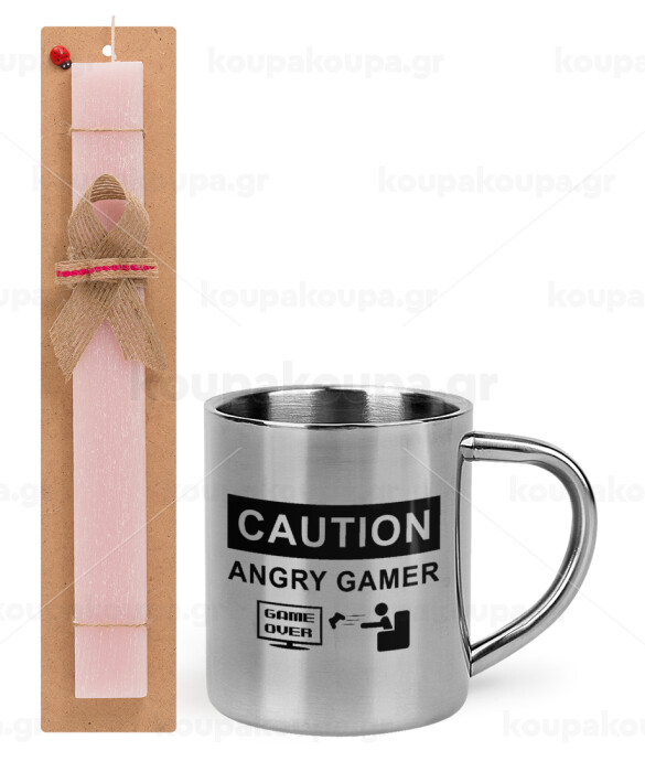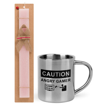 Caution, angry gamer!, Πασχαλινή Λαμπάδα με μεταλλική κούπα θερμό (300ml) & κερί αρωματικό πλακέ (30cm) (ΡΟΖ)
