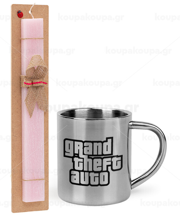 GTA (grand theft auto), Πασχαλινή Λαμπάδα με μεταλλική κούπα θερμό (300ml) & κερί αρωματικό πλακέ (30cm) (ΡΟΖ)
