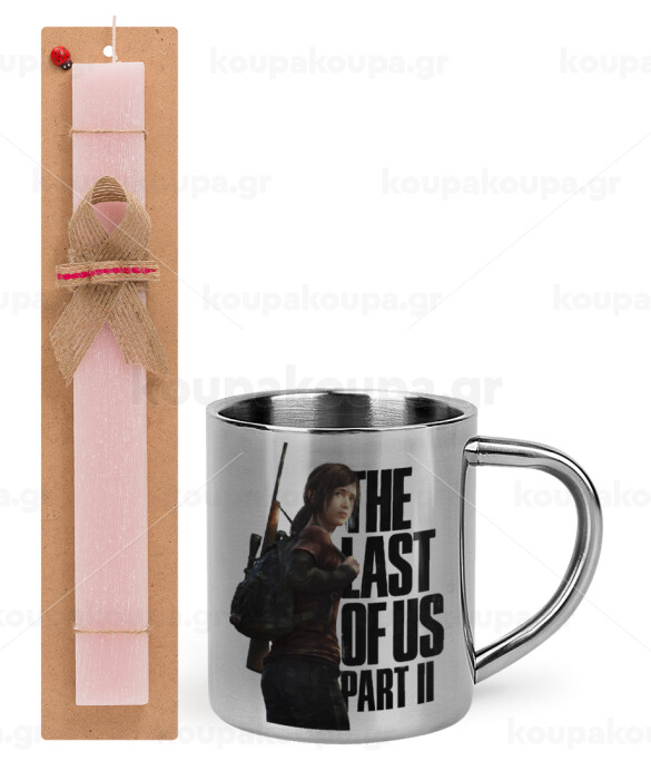Last of us, Ellie, Πασχαλινή Λαμπάδα με μεταλλική κούπα θερμό (300ml) & κερί αρωματικό πλακέ (30cm) (ΡΟΖ)
