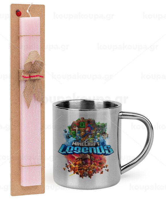 Minecraft legends, Πασχαλινή Λαμπάδα με μεταλλική κούπα θερμό (300ml) & κερί αρωματικό πλακέ (30cm) (ΡΟΖ)