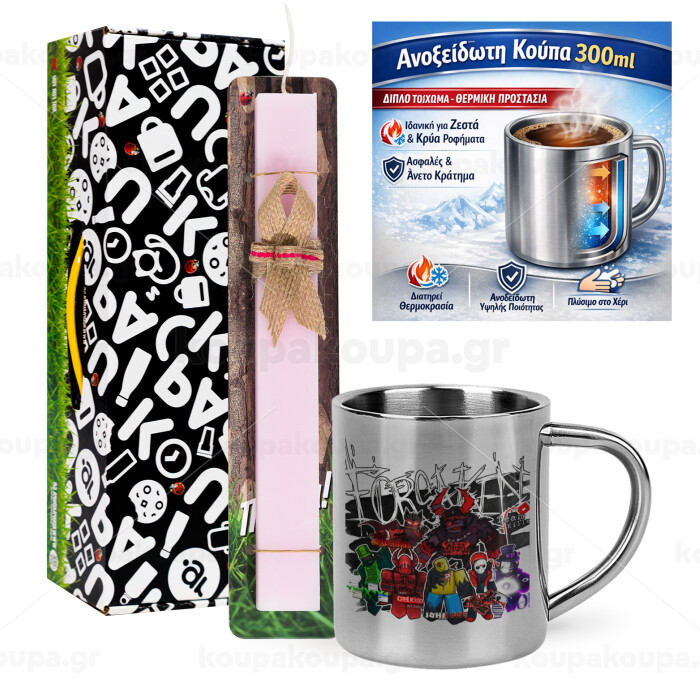Roblox Forsaken, Πασχαλινή Λαμπάδα με μεταλλική κούπα θερμό (300ml) & κερί αρωματικό πλακέ (30cm) (ΡΟΖ)