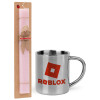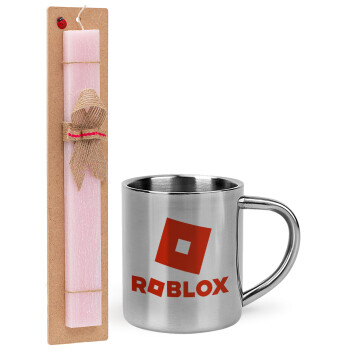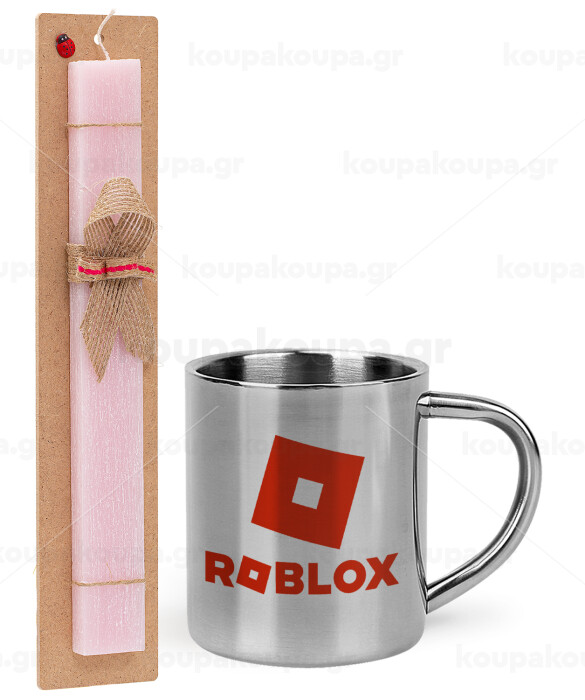 Roblox red, Πασχαλινή Λαμπάδα με μεταλλική κούπα θερμό (300ml) & κερί αρωματικό πλακέ (30cm) (ΡΟΖ)