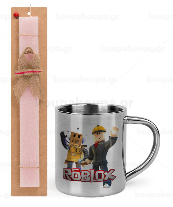 Roblox, Πασχαλινή Λαμπάδα με μεταλλική κούπα θερμό (300ml) & κερί αρωματικό πλακέ (30cm) (ΡΟΖ)