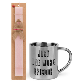 JUST ONE MORE EPISODE, Πασχαλινή Λαμπάδα με μεταλλική κούπα θερμό (300ml) & κερί αρωματικό πλακέ (30cm) (ΡΟΖ)