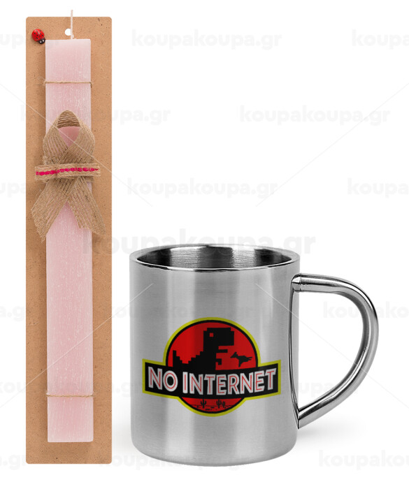 No internet, Πασχαλινή Λαμπάδα με μεταλλική κούπα θερμό (300ml) & κερί αρωματικό πλακέ (30cm) (ΡΟΖ)