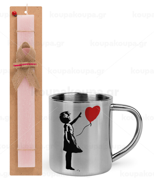 Banksy (Hope), Πασχαλινή Λαμπάδα με μεταλλική κούπα θερμό (300ml) & κερί αρωματικό πλακέ (30cm) (ΡΟΖ)