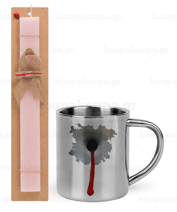 Bullet holes, Πασχαλινή Λαμπάδα με μεταλλική κούπα θερμό (300ml) & κερί αρωματικό πλακέ (30cm) (ΡΟΖ)