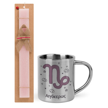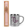Ζώδια Αιγόκερως, Πασχαλινή Λαμπάδα με μεταλλική κούπα θερμό (300ml) & κερί αρωματικό πλακέ (30cm) (ΡΟΖ)