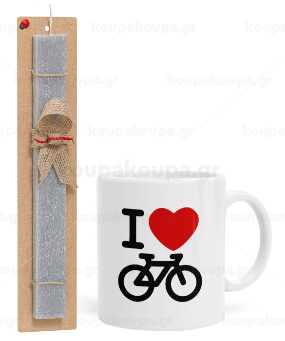I love Bike, Πασχαλινή Λαμπάδα με Κούπα κεραμική (330ml) & κερί αρωματικό πλακέ (30cm) (ΓΚΡΙ)