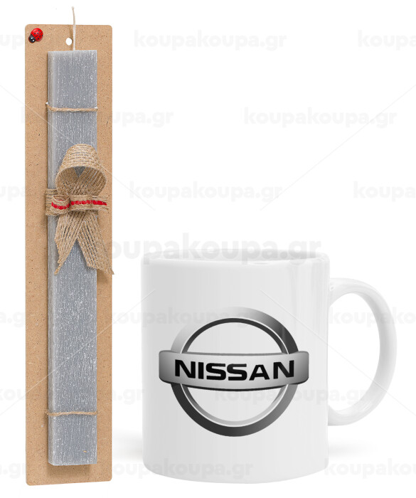 nissan, Πασχαλινή Λαμπάδα με Κούπα κεραμική (330ml) & κερί αρωματικό πλακέ (30cm) (ΓΚΡΙ)