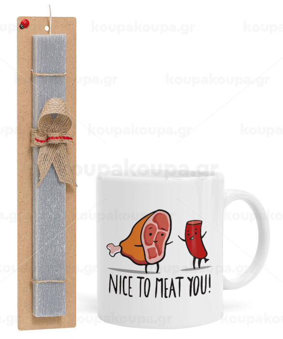 Nice to MEAT you, Πασχαλινή Λαμπάδα με Κούπα κεραμική (330ml) & κερί αρωματικό πλακέ (30cm) (ΓΚΡΙ)