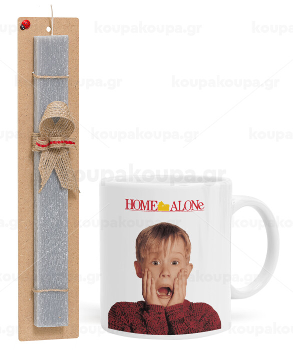 Μόνος στο σπίτι Kevin McCallister Shocked, Πασχαλινή Λαμπάδα με Κούπα κεραμική (330ml) & κερί αρωματικό πλακέ (30cm) (ΓΚΡΙ)
