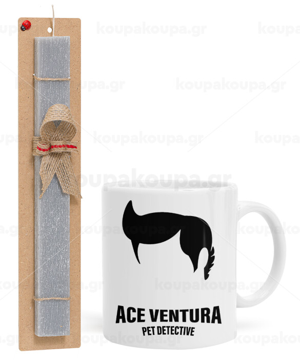 Ace Ventura Pet Detective, Πασχαλινή Λαμπάδα με Κούπα κεραμική (330ml) & κερί αρωματικό πλακέ (30cm) (ΓΚΡΙ)