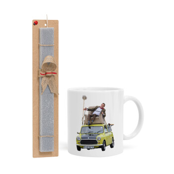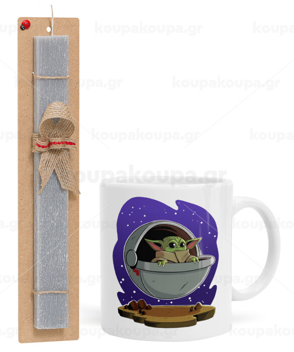 Baby Yoda mandalorian, Πασχαλινή Λαμπάδα με Κούπα κεραμική (330ml) & κερί αρωματικό πλακέ (30cm) (ΓΚΡΙ)
