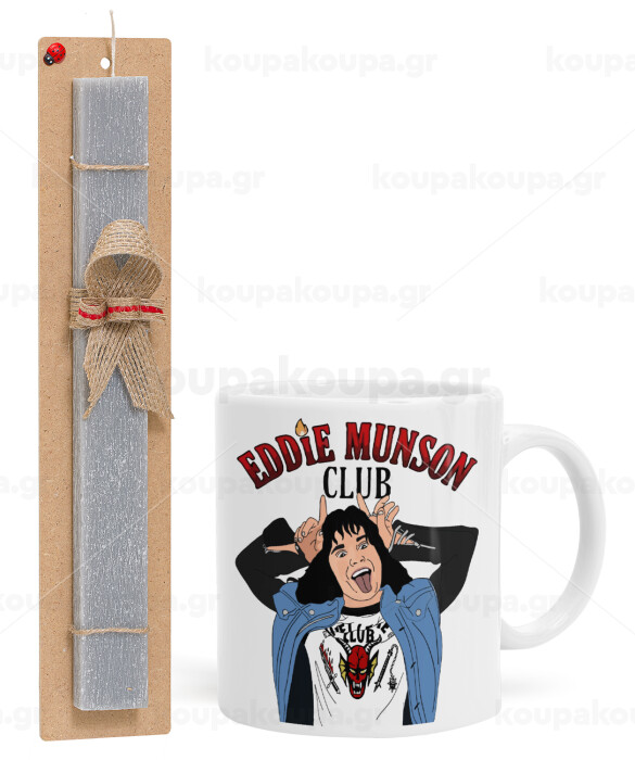 Eddie Munson, Πασχαλινή Λαμπάδα με Κούπα κεραμική (330ml) & κερί αρωματικό πλακέ (30cm) (ΓΚΡΙ)