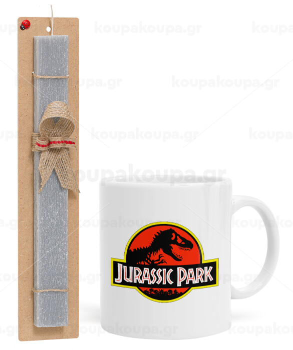 Jurassic park, Πασχαλινή Λαμπάδα με Κούπα κεραμική (330ml) & κερί αρωματικό πλακέ (30cm) (ΓΚΡΙ)