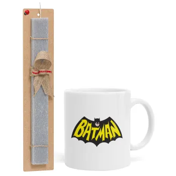Batman classic logo, Πασχαλινή Λαμπάδα με Κούπα κεραμική (330ml) & κερί αρωματικό πλακέ (30cm) (ΓΚΡΙ)