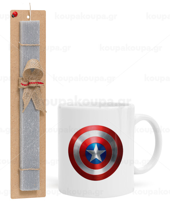 Captain America, Πασχαλινή Λαμπάδα με Κούπα κεραμική (330ml) & κερί αρωματικό πλακέ (30cm) (ΓΚΡΙ)