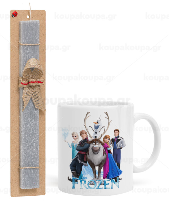 Frozen, Πασχαλινή Λαμπάδα με Κούπα κεραμική (330ml) & κερί αρωματικό πλακέ (30cm) (ΓΚΡΙ)