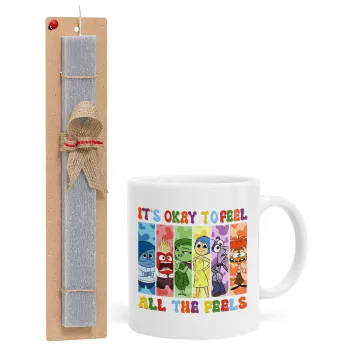 Inside Out It's Okay To Feel All The Feels , Πασχαλινή Λαμπάδα με Κούπα κεραμική (330ml) & κερί αρωματικό πλακέ (30cm) (ΓΚΡΙ)
