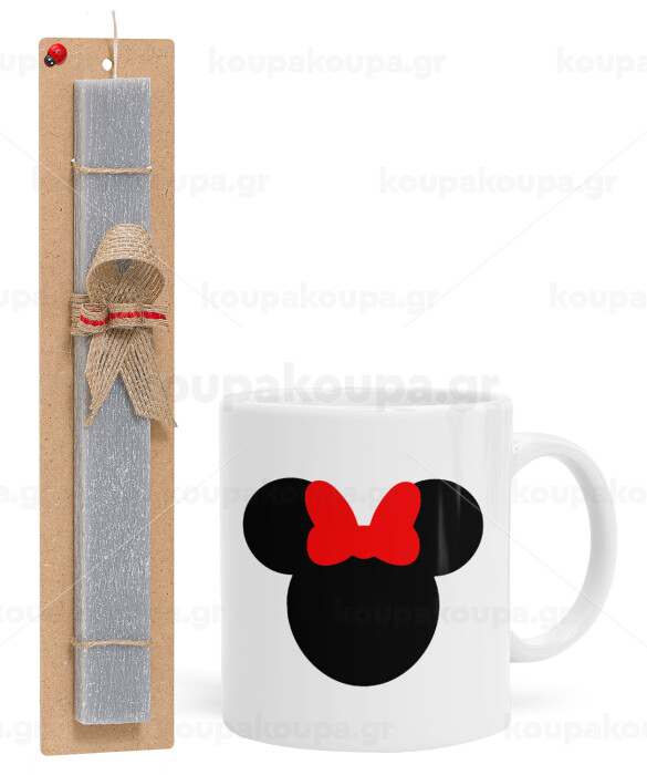 Minnie head, Πασχαλινή Λαμπάδα με Κούπα κεραμική (330ml) & κερί αρωματικό πλακέ (30cm) (ΓΚΡΙ)